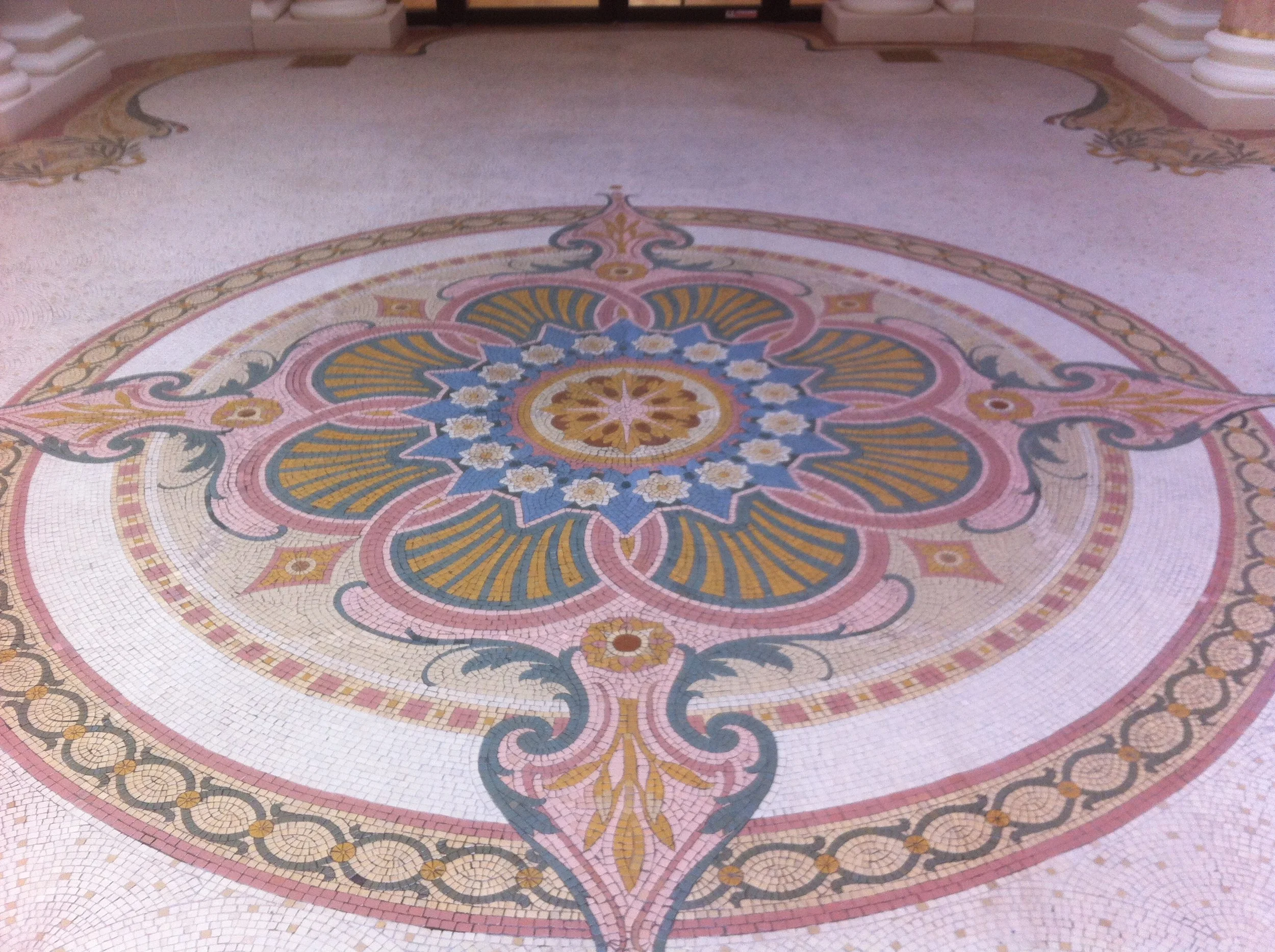 Dépose de la totalité de la mosaïque de grès cérame par panneaux et repose après assainissement de la chappe